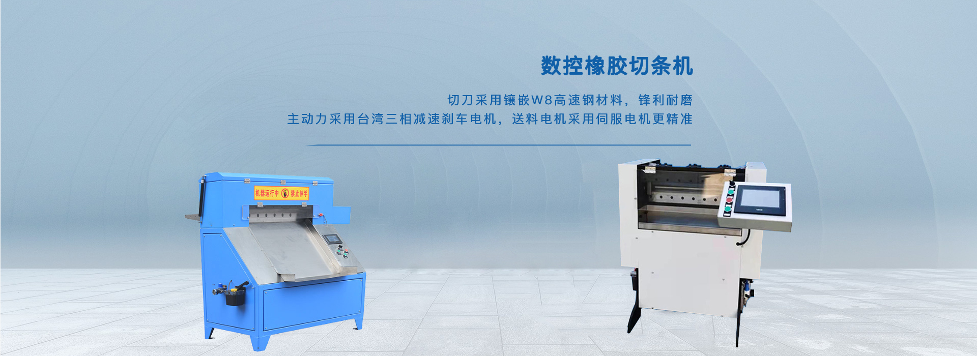 主要產品:數控橡膠切條機、多功能分條機、全自動橡膠墊圈切割機、精密數控裁切機、油壓切膠機、開煉機、密煉機等特殊機型,并承接各種自動化機械程序的編寫與服務。